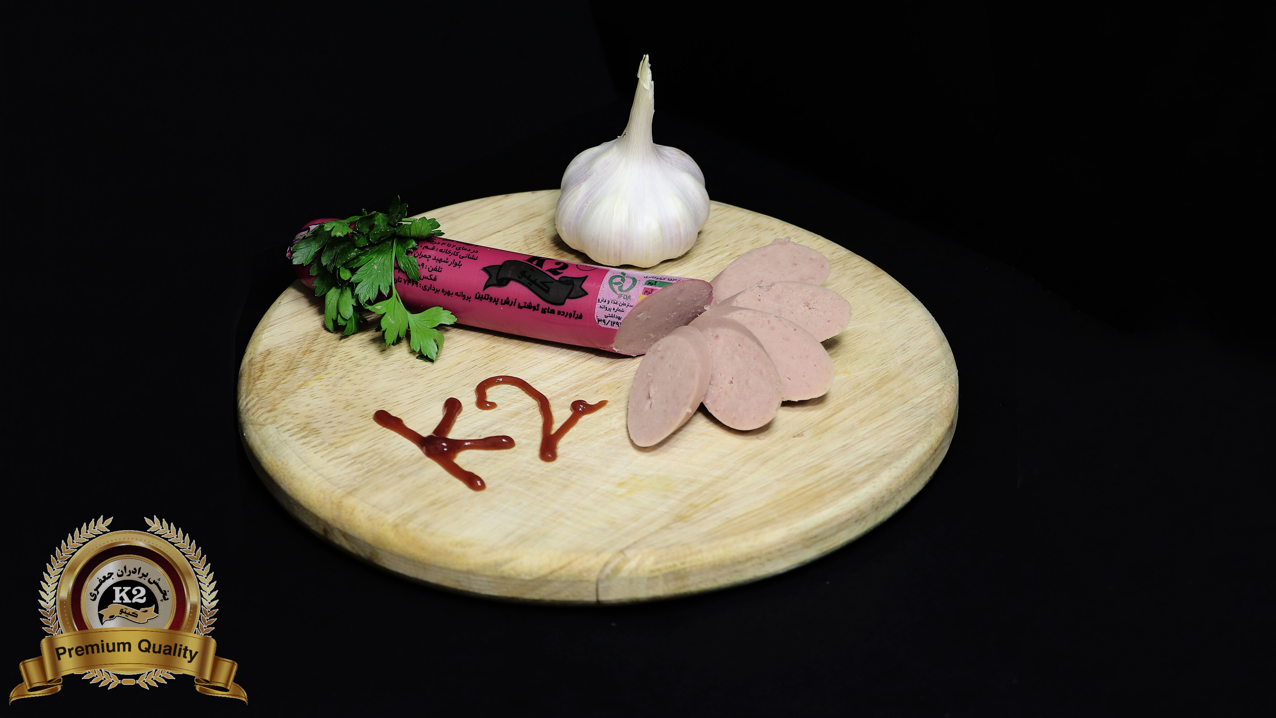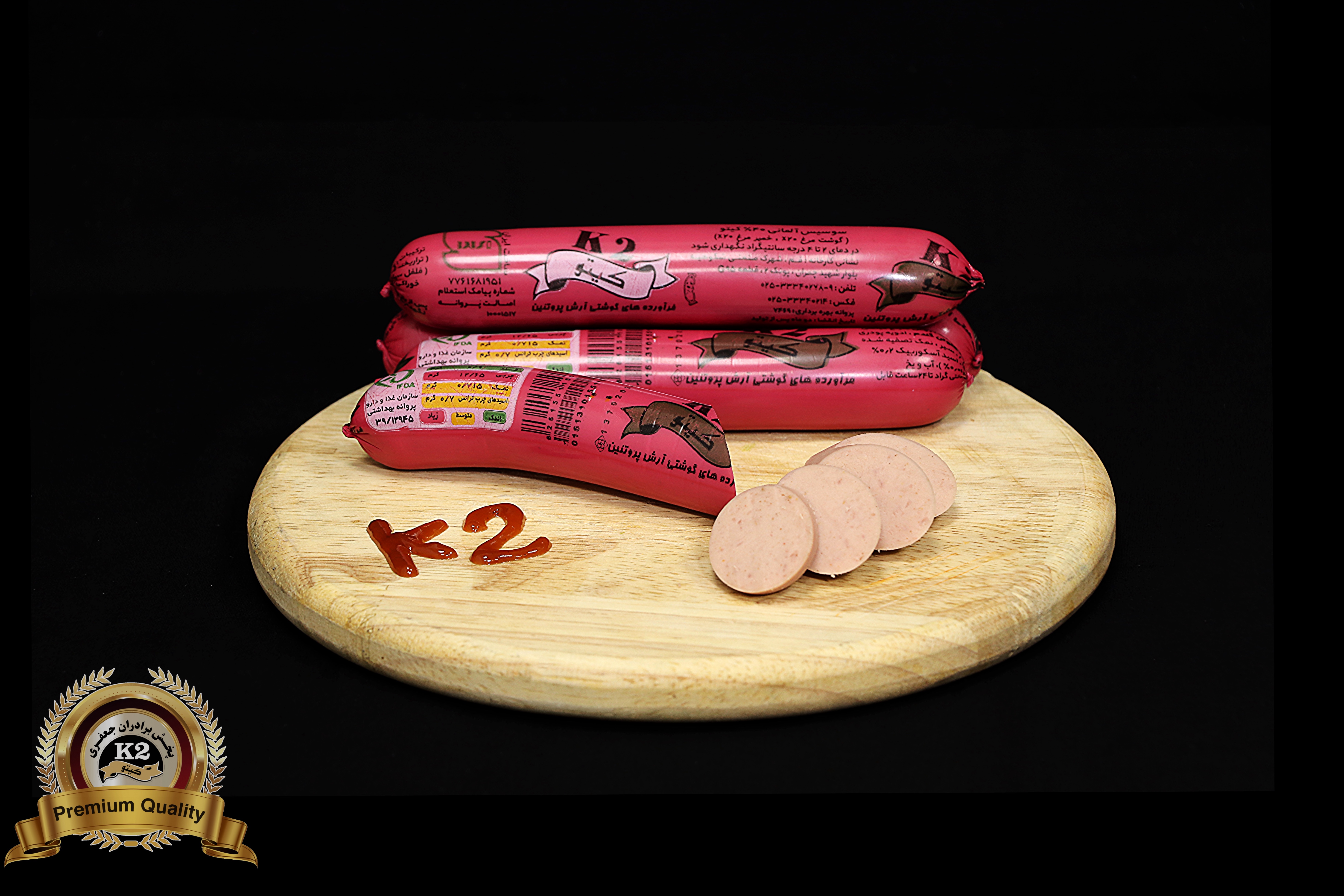 سوسیس آلمانی بنفش ۴۰٪ مرغ با ترکیبی از گوشت مرغوب و ادویههای مخصوص آلمانی، طعمی متعادل و حرفهای برای منوی فستفود و رستوران شما