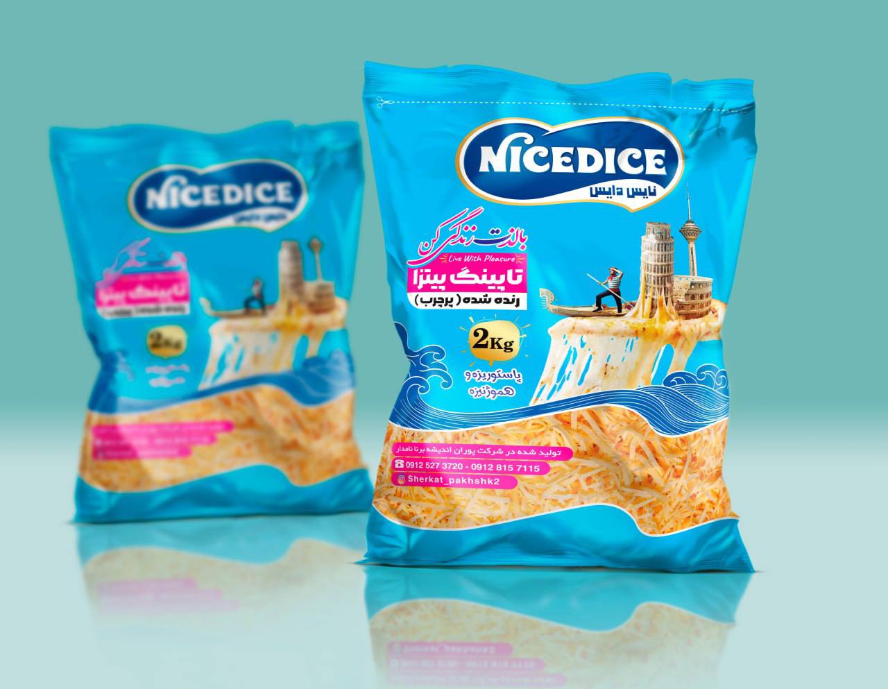 پنیر دو رنگ آبی وزن هر بسته ۲ کیلو گرم که دارای طعم و کشسانی مورد توجهی میباشد و برای پیتزا با ترکیب پنیر مشکی توصیه میشود:هر کارتن ۵ بسته(۱۰کیلو)،قیمت هر کارتن ۰